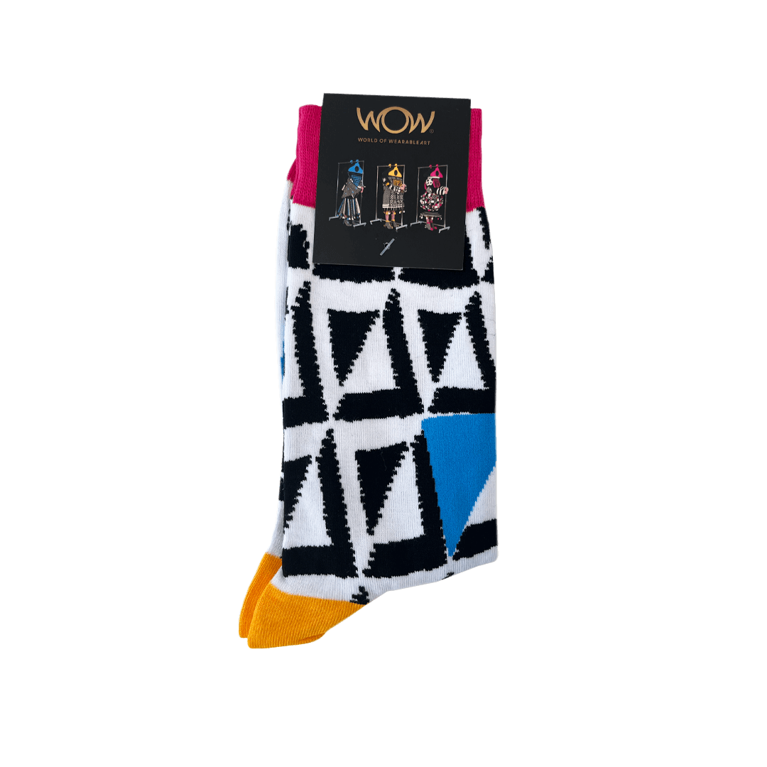 Add a pop of WOW to your every step with these bold, colourful socks inspired by a World of WearableArt garment. Featuring a striking woven pattern and playful design, they're the perfect blend of comfort and creativity. These socks are one size fits most (7–11) and ready to bring a little art to your ankles.