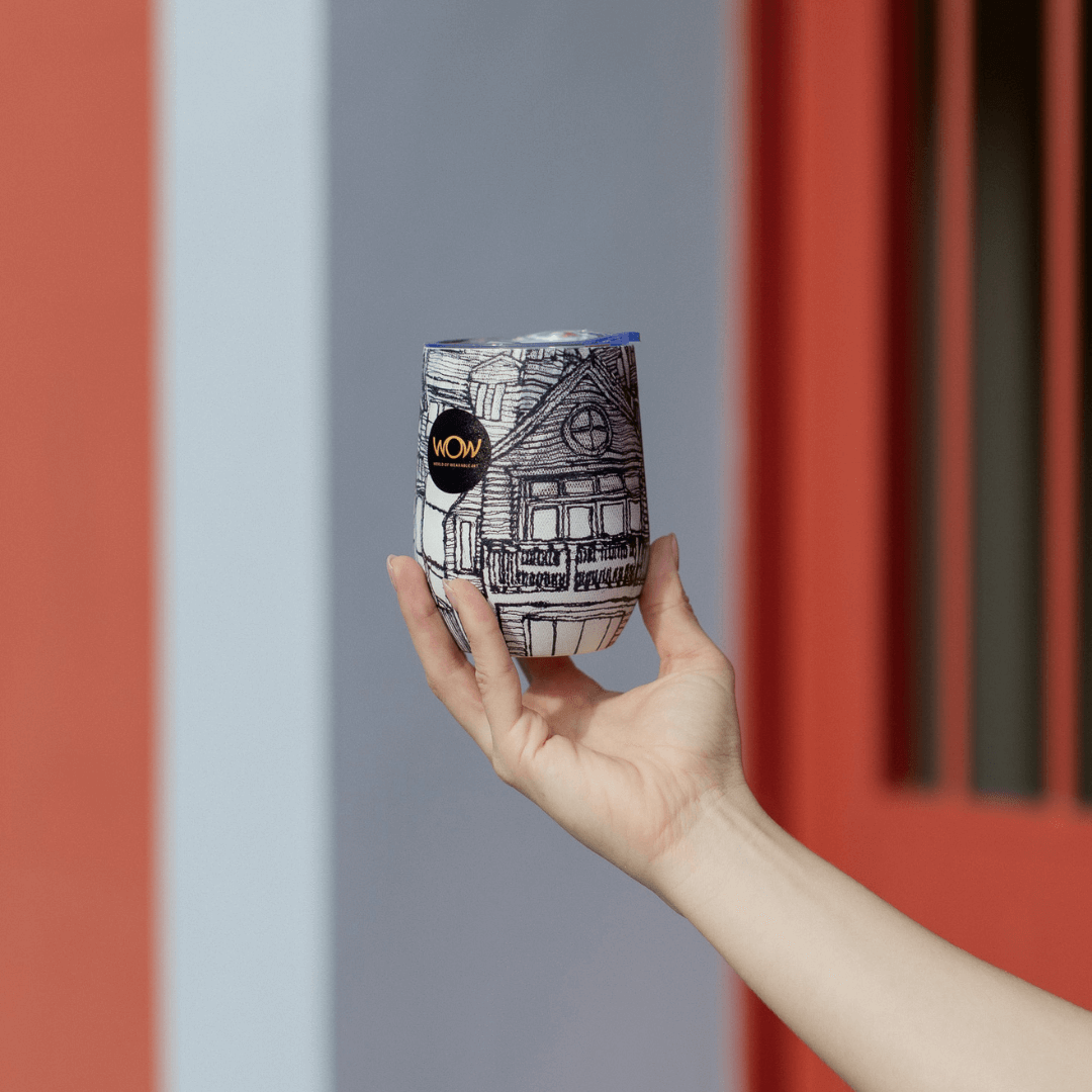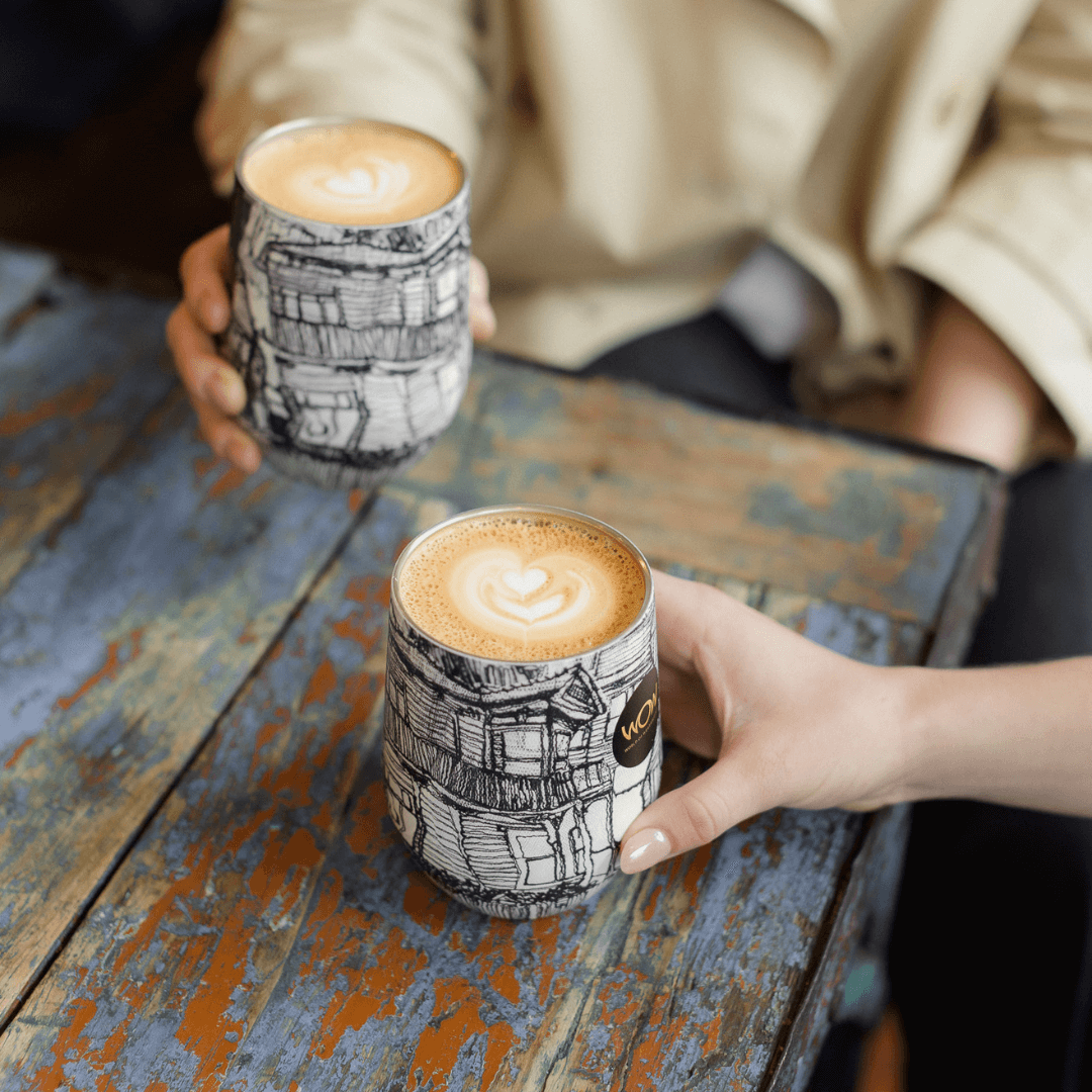 Bring a little WOW factor to every sip with this versatile, double-walled tumbler designed for both hot and chilled drinks. Whether you're enjoying your morning coffee or a crisp evening wine, this 350ml insulated cup keeps your beverage at the perfect temperature, at home or on the go. Featuring a detailed print of a WOW garment, this cup adds a touch of wearable art to your everyday.
