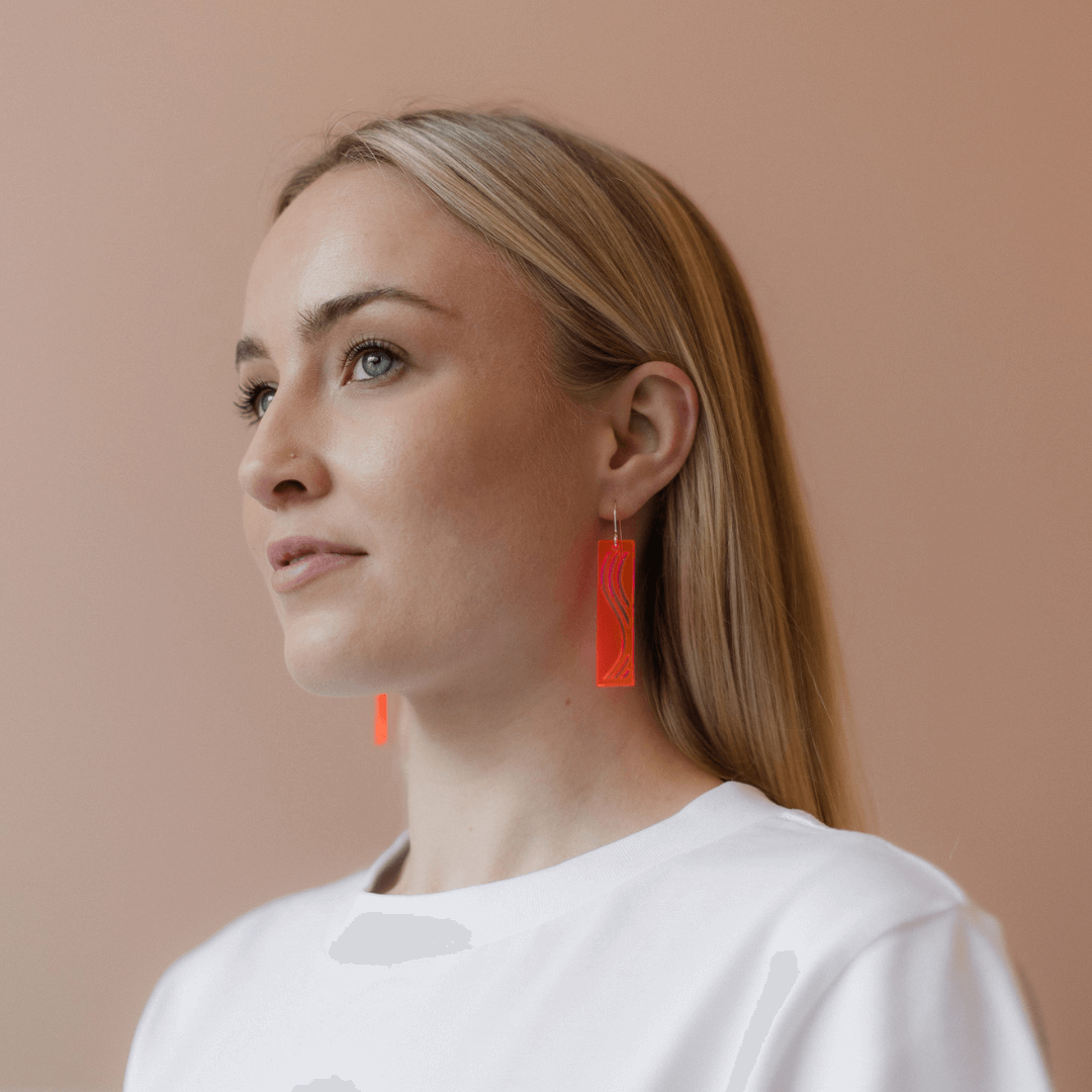 Material: Neon pink perspex and silver plated (nickel free) hooks.